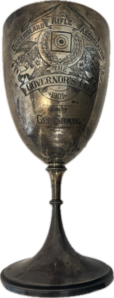 The Queensland Rifle Association Governor’s Cup, is shown here from 1901. QRA was run by the army. Many from the army were shooters. Being a Sergeant and a champion shooter was a big thing in those days, more popular than cricket and well regarded.