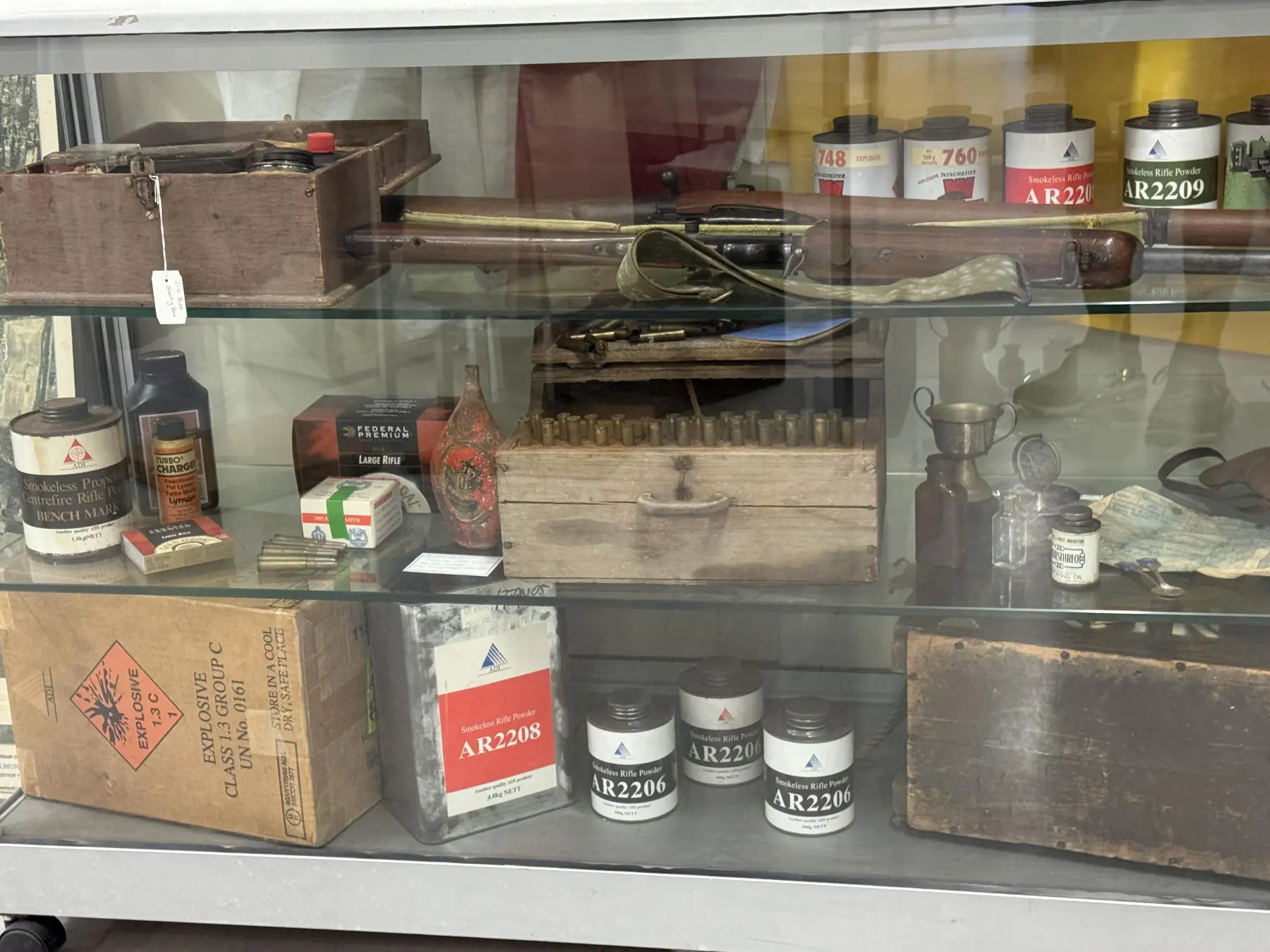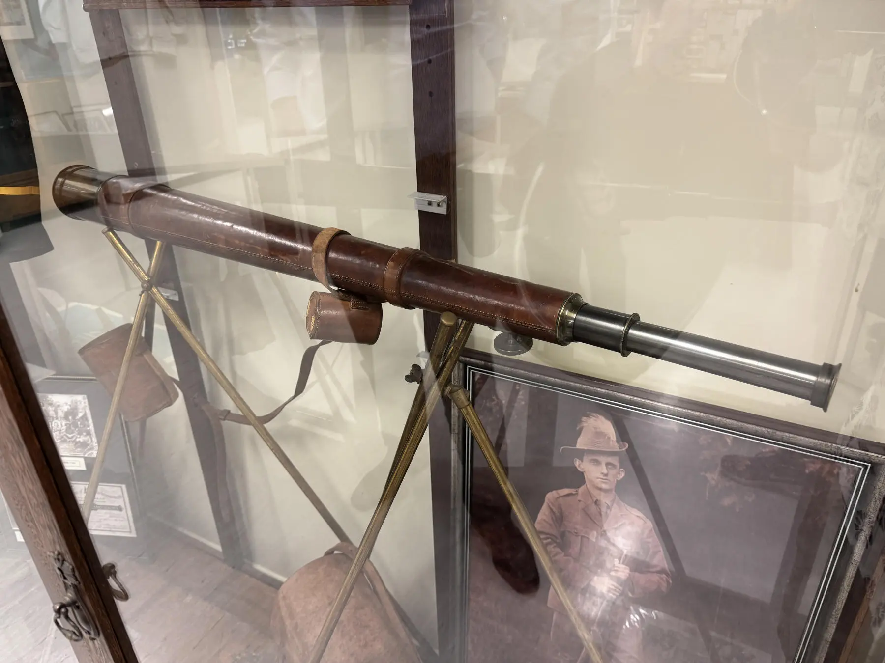 The 8th photo shows the red gunpowder flask from London in the display case.