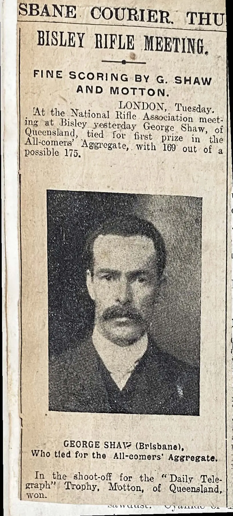 G Shaw looks quite different by 1921 at age 46 to earlier twenties photos. Harold was in the small bore competitions and competed with his father on fishing competitions.