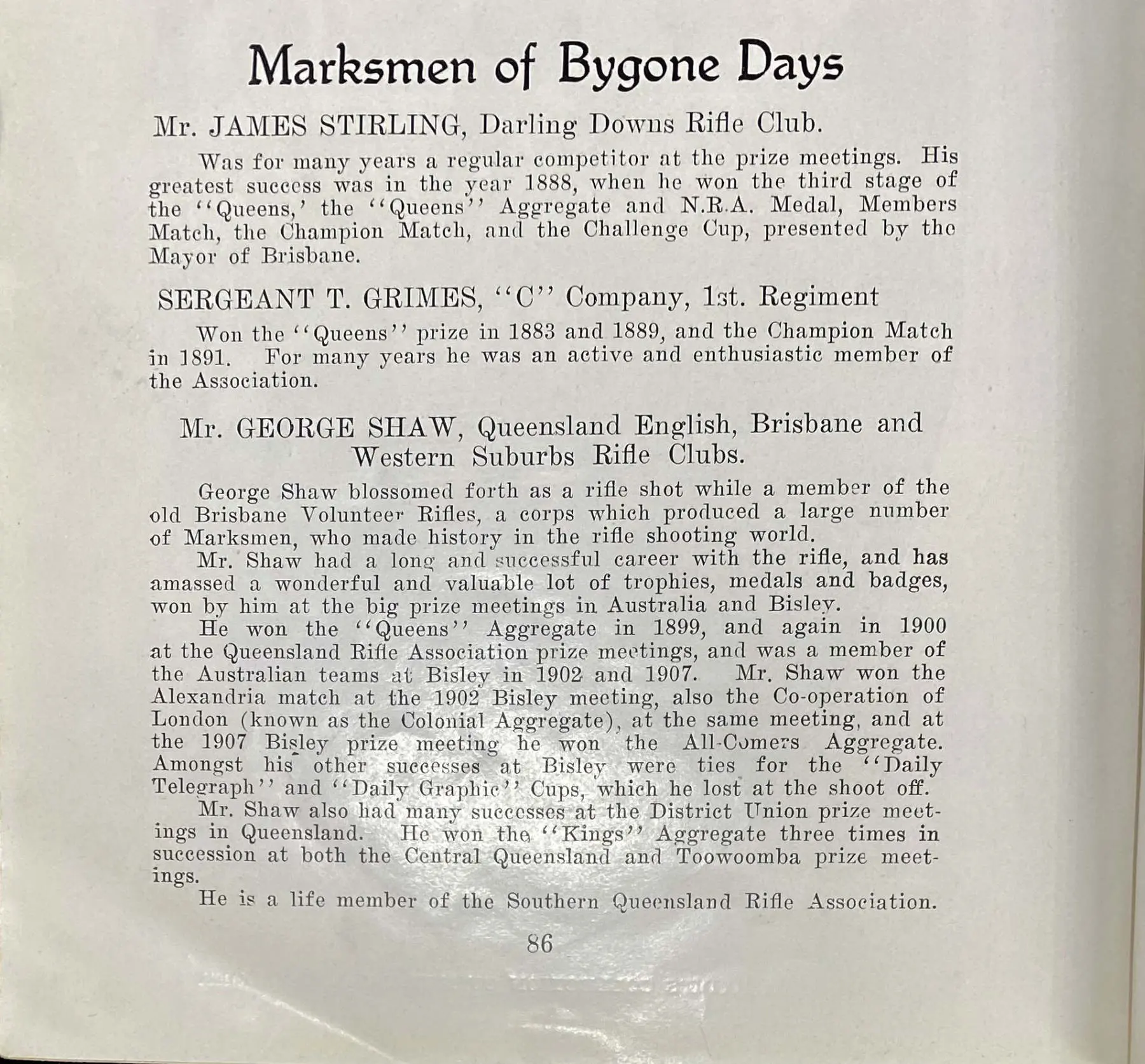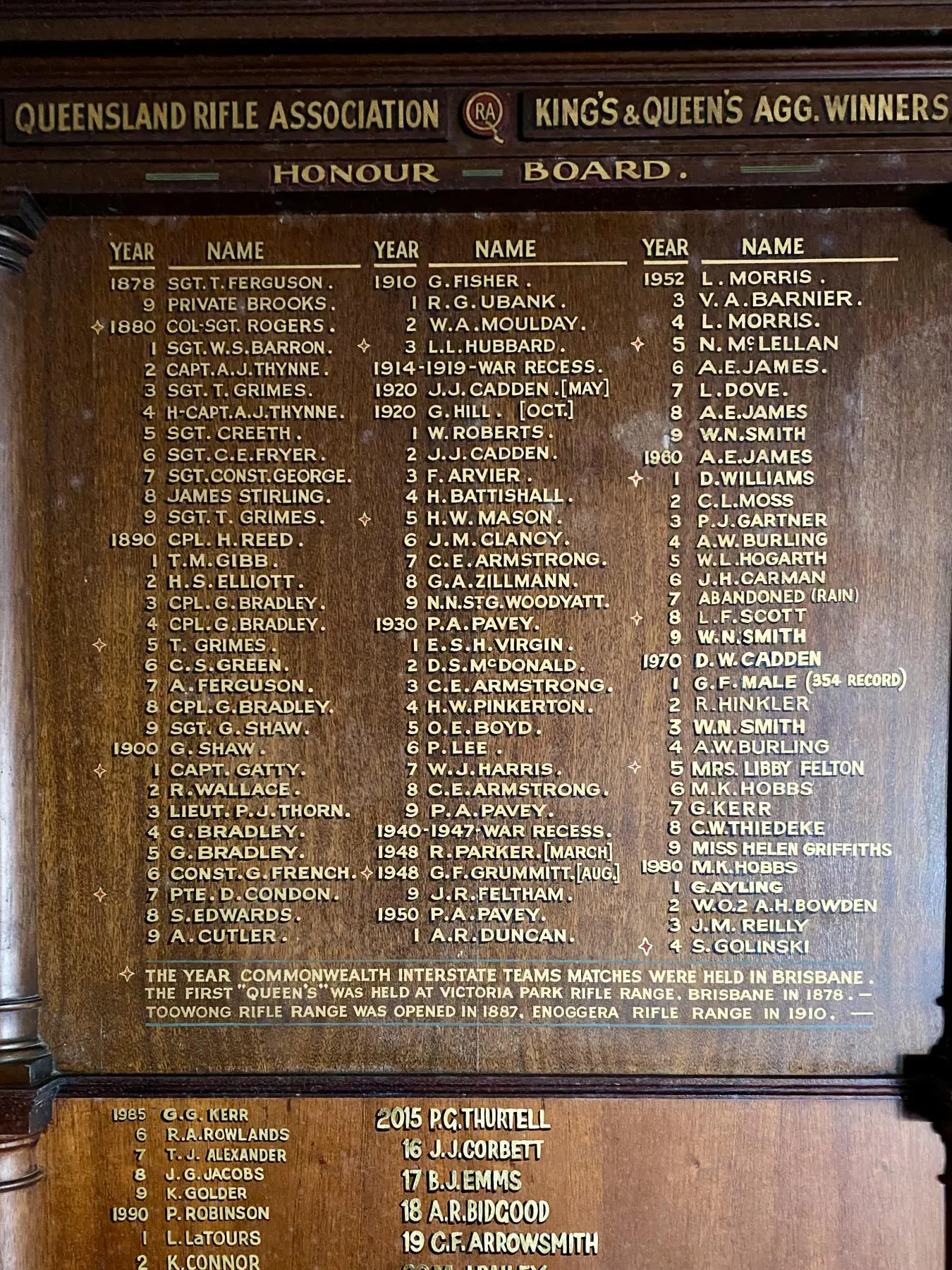 The 1901 photo was at Toowong. Over the years the clubs have moved around substantially. After Toowong, shooting moved to Enoggera – now the Barracks.